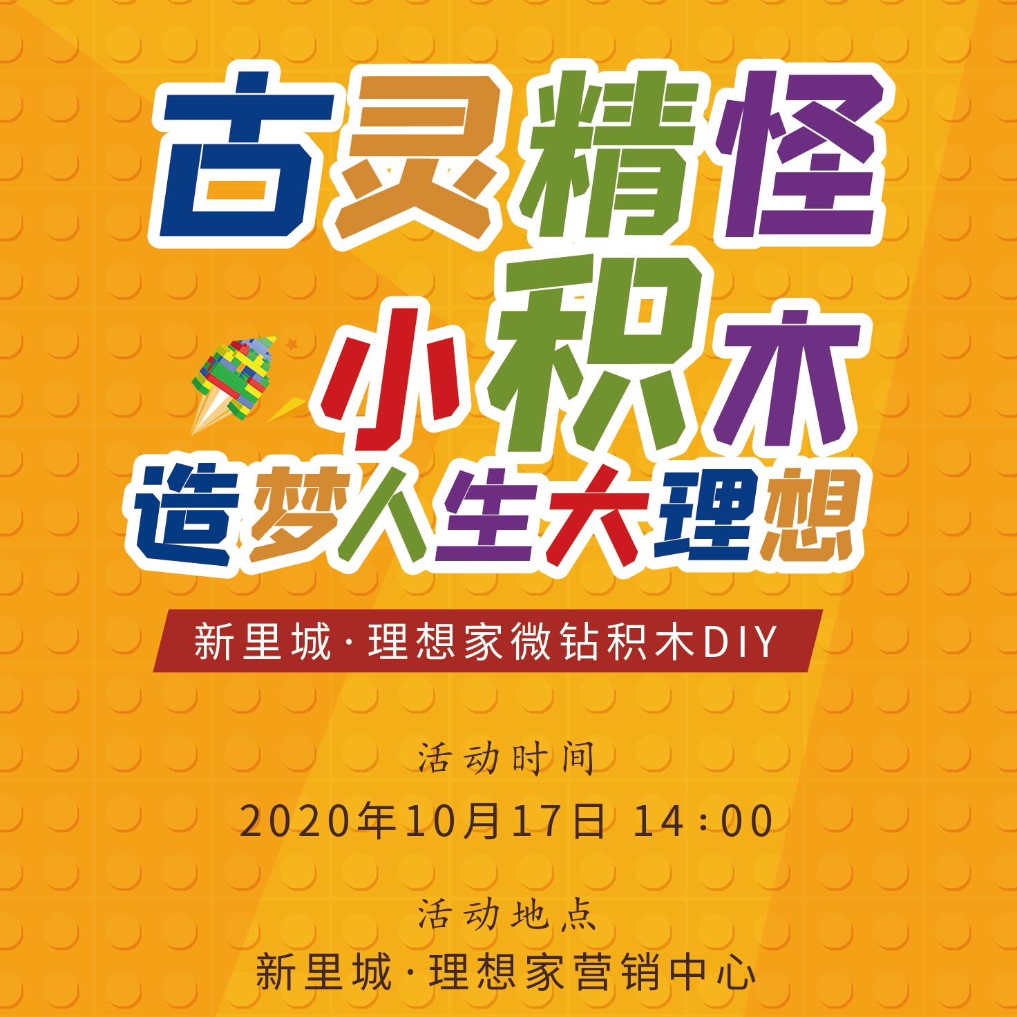 在这个网络互联一切的时代,和孩子一起游戏的温馨时光却越来越少。所以这个周末,和你的孩子放下手中的手机、平板,一起来新里城·理想家微钻积木DIY专场,回味经典的积木乐趣吧!