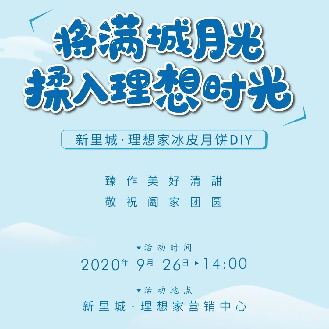 9月26日新里城·理想家冰皮月饼DIY,好吃有范儿,只等你来!不同于传统月饼,冰皮月饼不需烘烤,外皮软糯又劲道,内馅也多以水果为主,颜值爆表又健康……各种意想不到的味蕾惊喜,搭配亲手制作的满满成就感,这样的月饼你真的不能错过!
