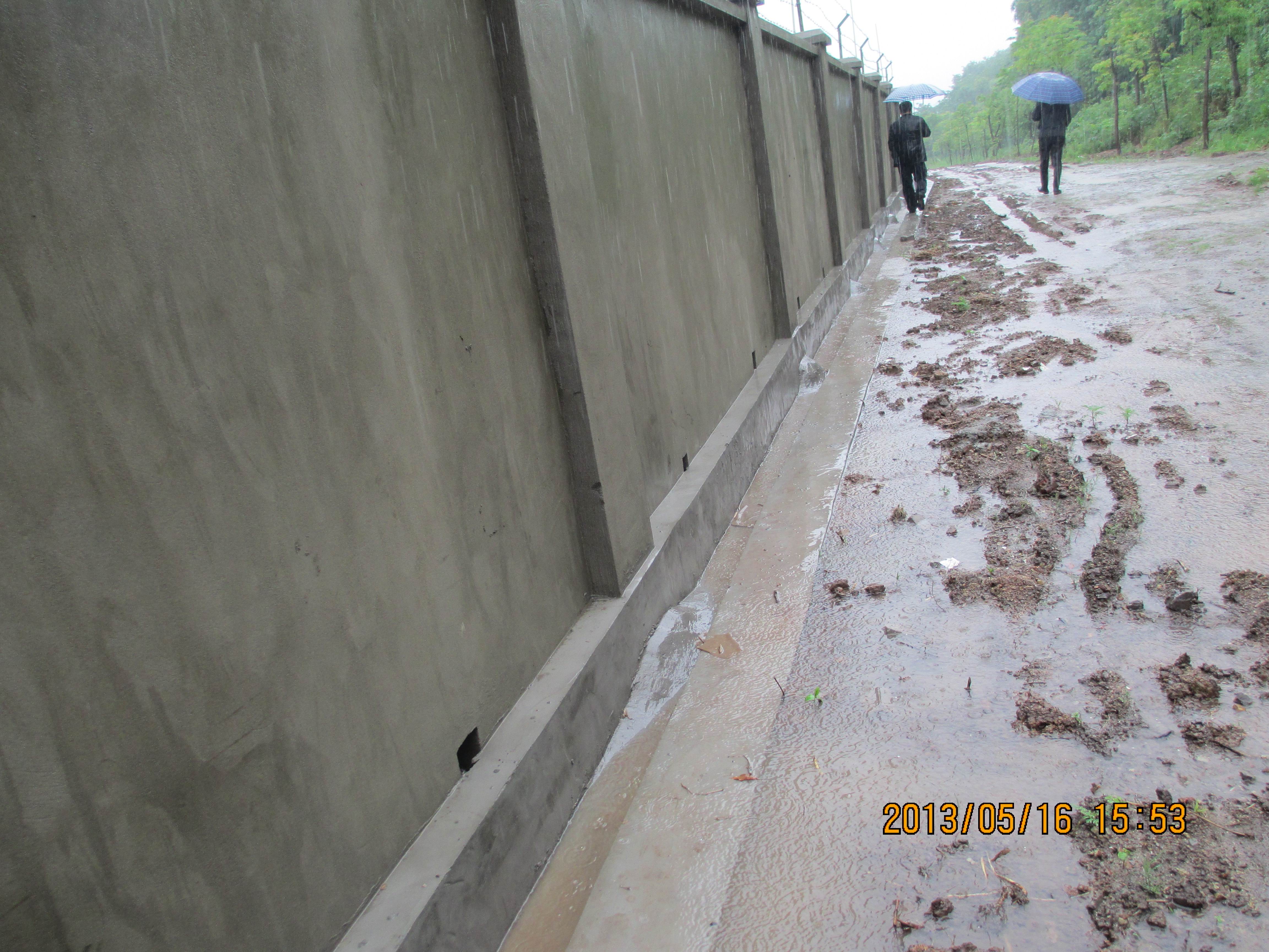 (图为露营地围墙外侧,利用外侧排水沟,有组织收集龙山山洪)