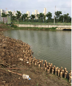 龙湖湾一期景观工程,6#、7#、8#楼周边的临湖景观正在加紧施工中,因考虑对湖泊的保护,防止驳岸泥土下滑,对龙湖湾东入口至C区平台这一段采取了护桩施工。