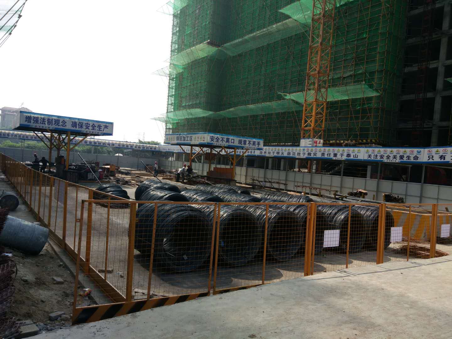 截至2018年6月1日,龙湖湾二期项目4#、5#楼均已完成结构封顶,同时1-15层墙体已砌筑完成,计划六月中旬完成15层以上主体结构验收,开始墙体砌筑;1#楼已完成至16层结构板,2#楼已完成至15层结构板,3#楼已完成至17层结构板,为了确保保质保量如期交房,1#、2#、3#楼均加班加点的在抓紧施工,保证每月5-6层的进度。在保证工程质量,抢抓工程进度的同时,现场安全文明施工现场布置也已全面铺开,随着各单体之间地库顶板的陆续完成,现场的安全通道,文明标语陆续搭设安装完成。龙湖湾二期项目现场安全文明施工的目标是确保芜湖市标化工地,争取省标化。